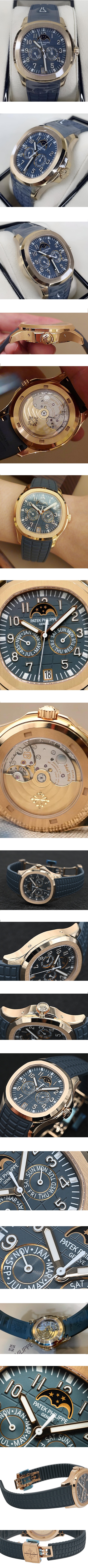 文字盤:ブルーグレー、アクアノート・エンボス・パターン、ホワイト夜光付ゴールド植字数字。